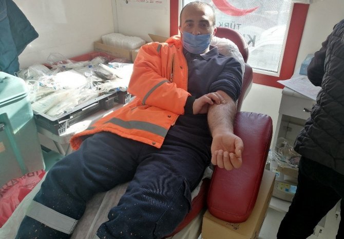 Aksaray'da sokağa çıkma kısıtlamasında boş kalan cadde ve sokakları gezerek çevre temizliği yapan Aksaray Belediyesi Temizlik İşleri Müdürlüğü ekipleri örnek bir davranışta bulundu. Temizlik için sıvanan kollar bu kez kan bağışında bulunmak için sıvandı.