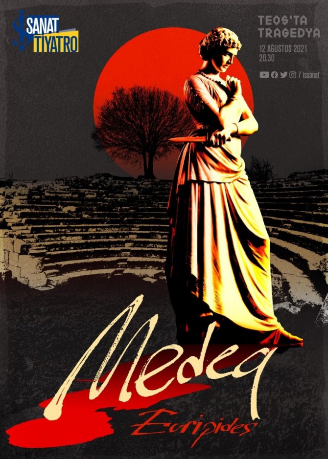 Oyundan bölümlerin sahnelendiği Medea tragedyası, İason'un eşi ve Kolhis Krallığı'nın prensesi olan Medea'yı terk ederek Korinthli Yunan prensesle evlenmeye karar vermesi üzerine yaşananları konu alıyor. Çekimleri, Türkiye İş Bankası'nın 2018 yılından bu yana kazı çalışmalarına katkı sağladığı Teos Antik Kenti'nde gerçekleştirilen oyunun yönetmenliğini Mehmet Ergen üstlendi. Tiyatro sanatçıları Gizem Erdem, Güliz Gençoğlu, Elif Ürse ve İpek Türktan Kaynak'ın rol aldığı oyun, ilk gösteriminden itibaren kültür merkezinin video paylaşım platformu kanalında ve internet sitesinde ücretsiz erişime açık olacak.