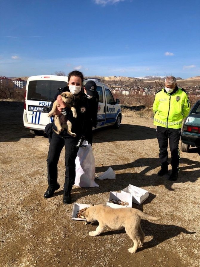 Erzincan'ın Tercan ilçesinde görev yapan polisler sokak hayvanlarına mama ve su desteğinde bulundu.