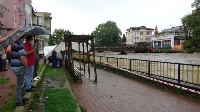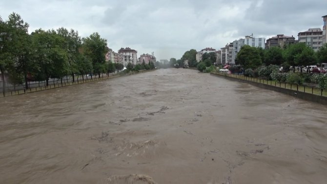 Samsun'un Salıpazarı, Çarşamba ve Terme ilçelerinde etkili olan yağışlar sonrasında Terme ilçe merkezinden geçen çay, taşma noktasına geldi. Polis ekipleri ilçedeki köprülerin giriş-çıkışlarını kapatırken, belediyeden ise sel felaketine karşı anonslar yaparak vatandaşları uyarıyor.