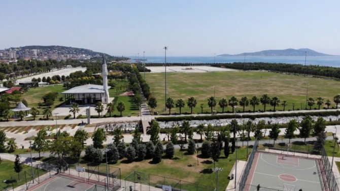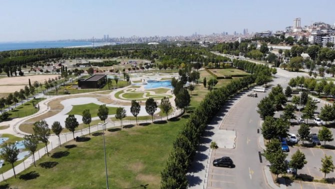 Öte yandan artan sıcaklıklar sonrası boş kalan Maltepe Sahili havadan görüntülendi.