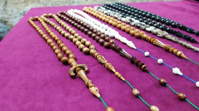 Adana'dan Şanlıurfa'nın tarihi hanında düzenlenen aybaşı tespih pazarına katılan 44 yaşındaki usta Emrah Dinç, 9 yaşından beri tespih işi ile uğraştığını belirtti. Dinç, Şanlıurfa'da düzenlenen aybaşı pazarı sayesinde buradaki müşterilerine ulaşma fırsatı yakaladığını söyledi.