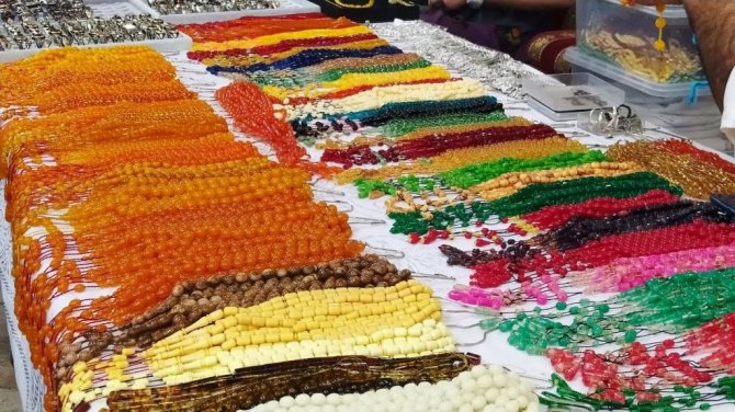 Çeşitli illerden Şanlıurfa'ya gelen koleksiyoncular, en pahalı tespihlerini görücüye çıkarttı. Şanlıurfa'nın yanı sıra Ankara İstanbul, Adana, Gaziantep, Diyarbakır, Adıyaman ve Mardin gibi kentlerden gelerek Balıklıgöl bölgesindeki tarihi Buz Hanı içerisinde binlerce tespih çeşidini sergileyen ustalar ve koleksiyoncular, meraklılarıyla buluştu. Özel işlemeli tespihler, 20 liradan 100 bin liraya kadar değişen fiyatlarla alıcı buldu. Tespihler arasında bulunan damla taş kehribarın gramı 400 liradan satılıyor. Pazarda, başta damla taş kehribar olmak üzere sıkma kehribar, toz kehribar, ateş kehribar ve Osmanlı kehribarından yapılan tespihler de ilgi görüyor.