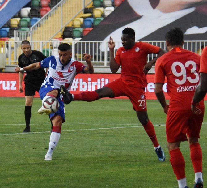 74. dakikada savunma arkasına gönderilen topa ceza sahasında hamle yapan kaleci Metin Uçar, ayaklarıyla Oğulcan Ülgün’ü yere indirdi, hakem “devam” kararı verdi.