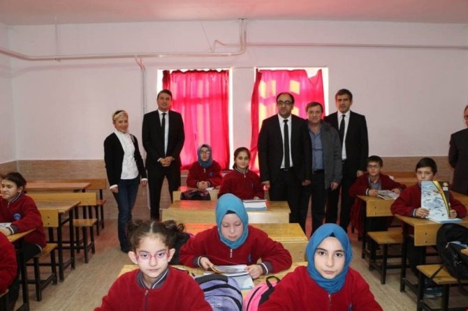 Türk Hava Kurumu (THK) Simav Şubesi tarafından, Kütahya’nın Pazarlar ilçesinde ortaokulu öğrencilerine defter dağıtıldı.