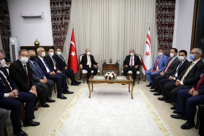 Görüşmede AK Parti Milletvekilleri Necip Nasır, Feyzi Birdibek ve Metin Gündoğdu ile Türkiye Esnaf ve Sanatkarlar Kredi ve Kefalet Kooperatifleri Birlikleri Merkez Birliği Başkanı Abdülkadir Akgül ve Bakanlık yetkilileri ile Cumhuriyet Meclisi Başkan Yardımcısı Armağan Candan, Ekonomi ve Enerji Bakanı Erhan Arıklı, Meclis Başkanlık Divanı üyesi Milletvekilleri Erek Çağatay, Oğuzhan Hasipoğlu ve Aytaç Çaluda'nın yanı sıra Türkiye'nin Lefkoşa Büyükelçisi Ali Murat Başçeri de yer aldı.