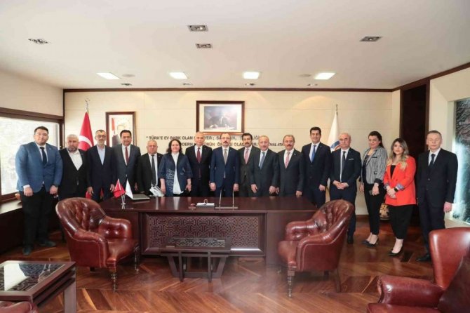 Bir dizi program ve ziyaret için Denizli'ye gelen Ticaret Bakanı Mehmet Muş, Büyükşehir Belediye Başkanı Osman Zolan'ı ziyaret etti. Ziyarete Bakan Muş'un yanı sıra Denizli Valisi Ali Fuat Atik, AK Parti Grup Başkanvekili Cahit Özkan, AK Parti Denizli Milletvekilleri Şahin Tin ve Nilgün Ök, AK Parti Denizli İl Başkanı Yücel Güngör, MHP Denizli İl Başkanı Yusuf Garip ile beraberindekiler eşlik etti. Başkan Zolan ilk olarak Bakan Muş'a Büyükşehir Belediyesi Kültür ve Sosyal İşler Dairesi Başkanlığı'nda sergilenen Yatağan palası, Büyükşehir Belediyesi Kültür Yayınlarından oluşan eserleri ve Denizli Sancağını anlattı. 15 Mayıs 1919'da Müftü Ahmet Hulusi Efendi'nin Denizli Sancağı ile ilk direnişi başlattığından bahseden Başkan Zolan, Bakan Muş'a Denizli Büyükşehir Belediyesinin yatırımlarını anlattı.