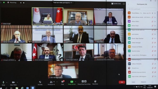 Pekcan, toplantının açılışında yaptığı konuşmada, pandemi sürecinde Nisan ayında 8 milyar 975 milyon dolar olan ihracatın, Mayıs ayında 9 milyar 956 milyon dolara, Haziran ayında 13 milyar 462 milyon dolara ve Temmuz’da da 15 milyar 11 milyon dolara yükseldiğini belirtti. Ayrıca Bakan Pekcan, bu değer ile en yüksek ikinci Temmuz ayı ihracat değerinin gerçekleştiğini söyledi.
