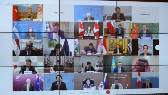 Ticaret Bakanı Ruhsar Pekcan, İsviçre Hükümeti'nin ev sahipliğinde videokonferans yöntemiyle gerçekleştirilen Dünya Ticaret Örgütü (DTÖ) Gayrıresmi Bakanlar Toplantısı'na katıldı.