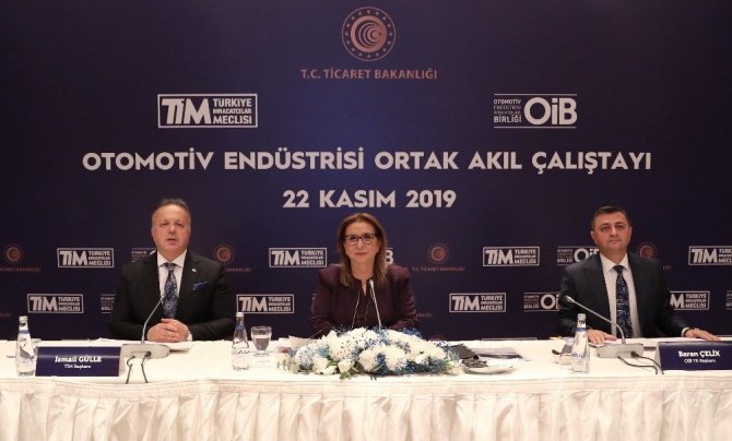 Ticaret Bakanı Ruhsar Pekcan başkanlığında TİM Dış Ticaret Kompleksi’nde gerçekleştirilen ‘Otomotiv Endüstrisi Ortak Akıl Çalıştayı’na TİM Başkanı İsmail Gülle, Otomotiv Endüstrisi İhracatçıları Birliği (OİB) Yönetim Kurulu Başkanı Baran Çelik ile otomotiv sanayi ve yan sanayide faaliyet gösteren firmaların üst düzey yöneticileri katıldı. Toplantıda otomotiv sektörünün bugünü ve yarını, ihracatının ve kapasitesinin artırılması, İhracat Ana Planı’nda yer alan hedef ülkelerde sektörün payının yükseltilmesi, daha fazla Ar-Ge ve katma değer odaklı yatırım, üretim ve ihracat için yapılması gerekenler, rekabetçiliğin geliştirilmesi konuları ele alındı.