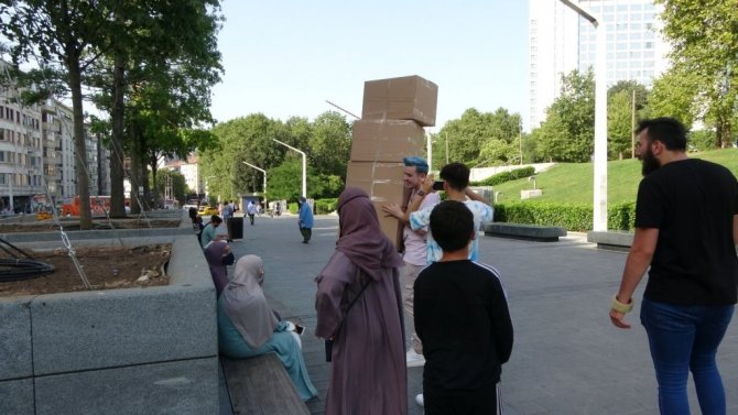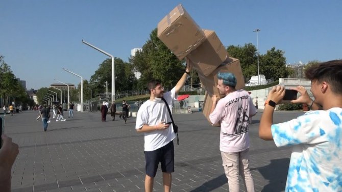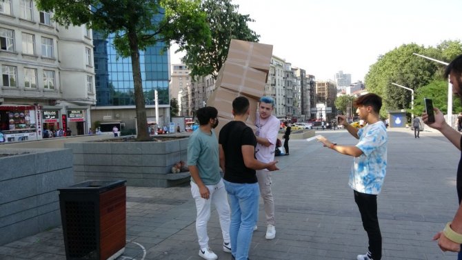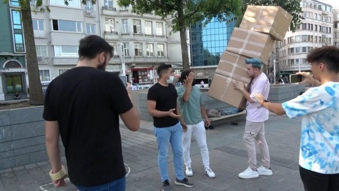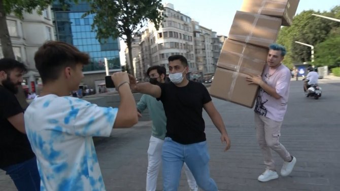 Binlerce takipçiye sahip TikTok fenomeni Semih Varol, sosyal medya hesabında paylaşacağı videoyu çekmek için arkadaşlarıyla birlikte Taksim Meydanı'na geldi. Elinde bulunan boş kolilerle vatandaşların yanına gidip adres sorarken birbirlerine bantlı yapışık kolileri vatandaşların üzerine düşürüyormuş gibi gösterdi. Arkadaşlarının yardımıyla o anları kayıt altına alan sosyal medya fenomenine kimi vatandaşlar gülerek karşılık verirken kimileri ise sert tepki gösterdi. Fenomenin yaptığı şaka ve topladığı tepkiler kameraya yansıdı.
