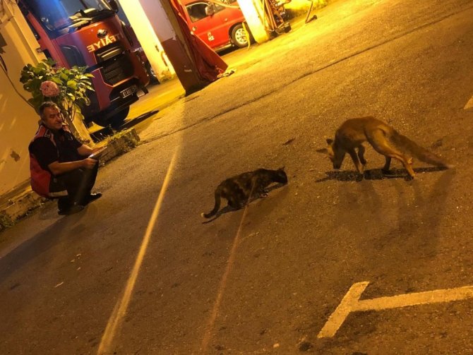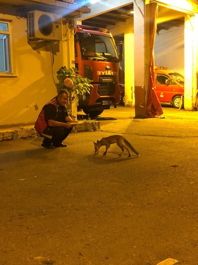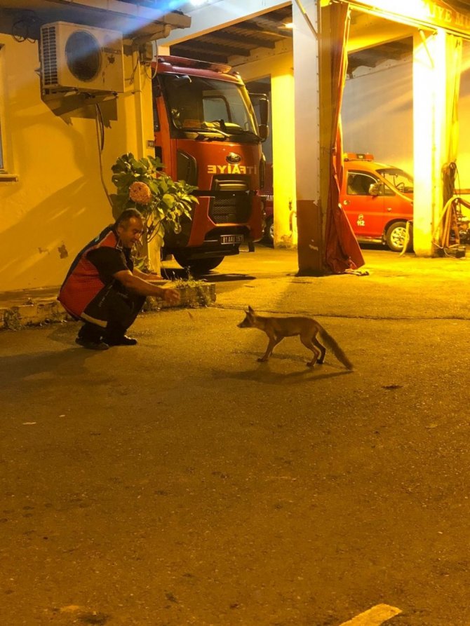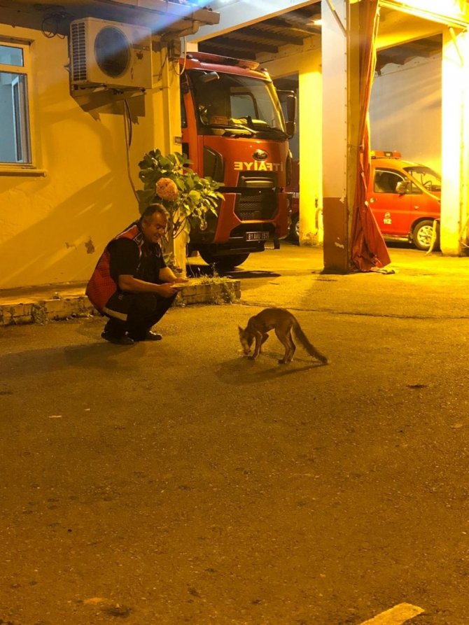 Düzce'nin Akçakoca ilçesinde yaklaşık bir haftadır itfaiye istasyonunun bahçesine gelen yavru tilki, itfaiye erlerinin dostu oldu.