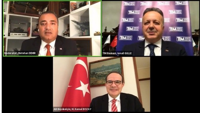 Türkiye İhracatçılar Meclisi (TİM), kovid-19 süreci ve sonrasında ticaretin yönünü çizmek hedefiyle büyükelçilerle düzenlediği TİM Export Talks online panellerine devam ediyor. Dördüncü paneli AB Nezdinde Türkiye Cumhuriyeti Daimi Temsilcisi Büyükelçi Mehmet Kemal Bozay ile gerçekleştiren TİM Başkanı İsmail Gülle, "Karşılıklı olarak yatırımlar, üretim, ticaret, finans konularında daha derin işbirliğini sağlayacak yeni bir yol haritası kaçınılmazdır. Türkiye’nin AB’ye ihracatında atak yapma imkânı var ama oynama alanı dar." dedi.