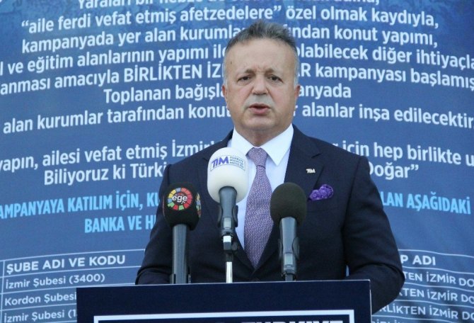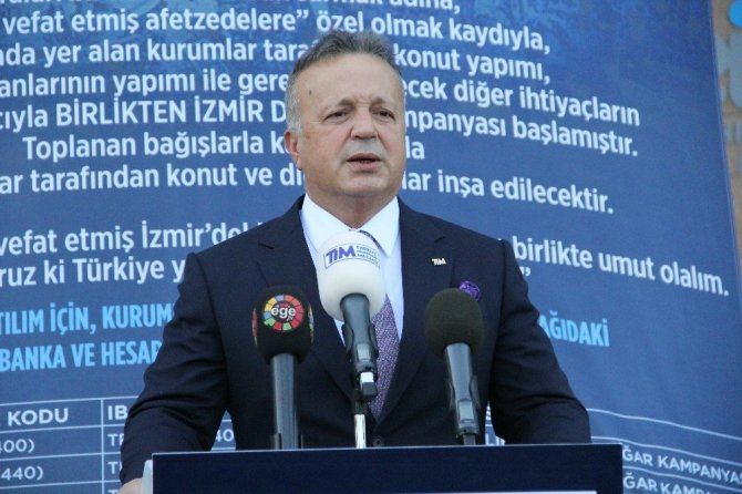 Ege İhracatçı Birliklerinde basın toplantısı düzenleyen TİM Başkanı İsmail Gülle, 95 bini aşan ihracat ailesini temsilen, İzmirlinin zor günde yanında olduklarını belirterek, “Ülkemizin üreten yüzü olarak bizler, elbette bu zorlu süreçte, İzmirimizin elinden tutmadan, elimizden gelen tüm desteği vermeden, bu felaketi köşemizden izleyemezdik. Her ne kadar, yiten canlar geri gelmeyecek olsa da, yuvasından olan kardeşlerimizin yarasına, bir nebze de olsa merhem olmak istiyoruz. Barış Pınarı Harekatında, ’Birliklerimiz, birlikteliğimizdir’ diyerek, bölgeye nasıl tırlar dolusu yardım gönderdiysek, bugün de aynı birliktelik ve dayanışma ruhuyla, depremzede ailelerimizin yanındayız” dedi.
