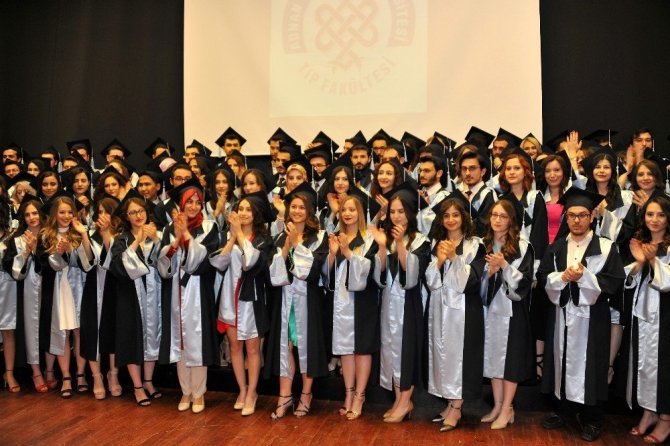 Dönem birincisi Doktor Aylin Kaya mesleğe katılmanın sevincini onurunu yaşamaktan gurur duyduğunu, mesleğini temsil ederken elinden gelenin en iyisini yapacağını söyleyerek emeklerinden dolayı bölüm hocalarına ve ailelere teşekkür etti. Kaya, plaketini ve başarı belgesini Rektör Prof. Dr. Cavit Bircan’ın elinden aldı.
