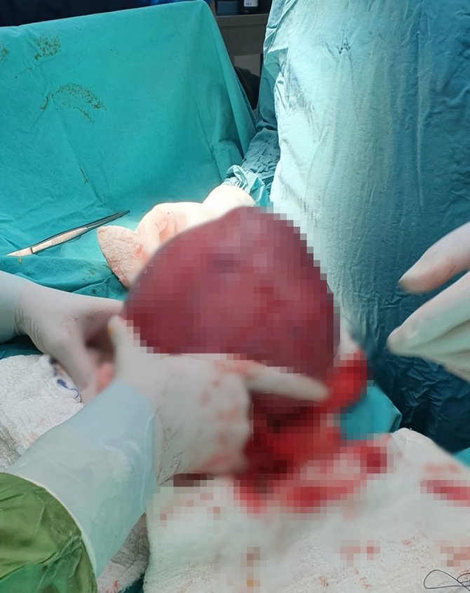 Ameliyatı gerçekleştiren Kadın Hastalıkları ve Doğum Uzmanı Opr. Dr. Esra Nur Özgür, "Huriye hanım bize çok ciddi sağlık problemleri ile geldi. Ciddi bir kanama şikayeti, karnında göbek üstüne kadar uzanan bir kitle şikayeti ile geldi. Korktuğu için daha önce doktora başvurmamış. O yüzden karnındaki kitlenin varlığı uzun süre fark edememişti. Kanı çok düşük olduğu için ameliyat öncesi çok yüklü miktarda kan yüklemesi yaptık. Yaklaşık bir 20 santim kadar 4 kilo ağırlığında bir kitlemiz vardı. Yavaş yavaş büyüdüğü için bunu anlayamamış. Kadınların birçoğunda olduğu gibi doktora başvurmaktan korkmuş büyük bir kitleye ulaşıncaya kadar. Çok şükür kötü huylu bir kitle değildi. Çok büyük boyutlara ulaştığı için bu durumda kansızlığa yol açar. Yaşam kalitesini etkileyen bir kitleydi. Buraya geldiğinde tansiyonu çok düşüktü. Nabzı yüksekti. Önce bir genel durumu düzeltmek zorunda kaldık. 3-4 gün boyunca tekrardan kan tranfüzyonları ve kanamasını düzeltmeye çalıştık. Genel durumu düzelir düzelmez ameliyatını gerçekleştirdik. Bu kitleler aslında sık görülen kitlelerdir ama bu kadar büyük boyutlara ulaşması nadirdir. Hasta bazen çok uzak yerlerde olur, hekime ulaşmakta güçlük çeker ama Huriye Hanımınki gibi büyük boyutlara ulaşan nadirdir. Yaklaşık 7 aylık bir gebelik büyüklüğündeydi. Sağlıkla atlattık" diye konuştu.