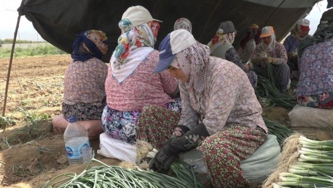 İzmir'in Tire ilçesinde hasat edilen taze soğanlar, Türkiye'nin dört yanında kurulan sofralara lezzet katıyor.