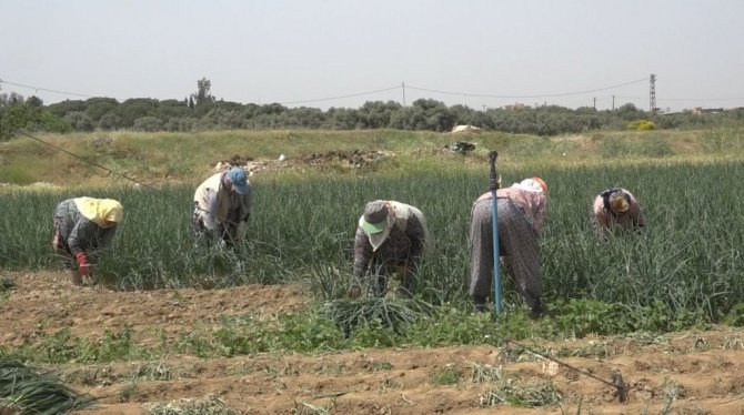 İzmir'in Tire ilçesinde hasat edilen taze soğanlar, Türkiye'nin dört yanında kurulan sofralara lezzet katıyor. Soğan üreticileri, tam kapanmaya rağmen işlerinin başında olduğunu söyledi.