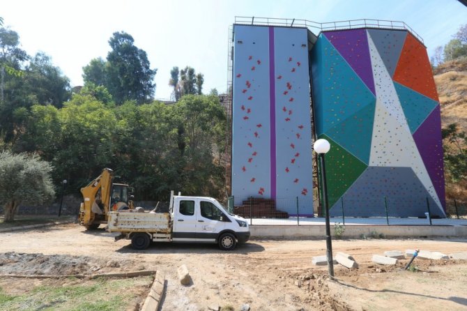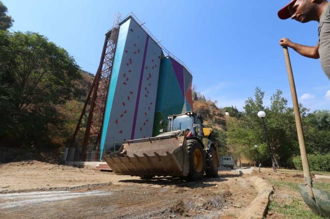 Tırmanma duvarına çevre düzenlemesi yapılıyor