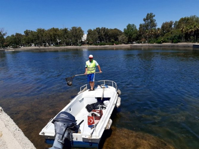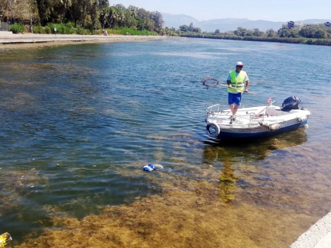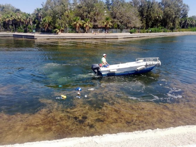 Antalya'nın Manavgat ilçesinde bulunan 3 bin metrekarelik alana sahip Titreyengöl'ün kıyılarından başlamak üzere yosunlarla kaplanan yüzeyi ve atıklarla dolu yüzeyi Manavgat Belediyesi Temizlik İşleri Müdürlüğü tarafından temizlendi.