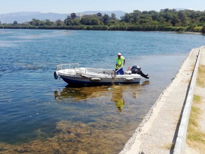Antalya'nın Manavgat ilçesinde bulunan 3 bin metrekarelik alana sahip Titreyengöl'ün kıyılarından başlamak üzere yosunlarla kaplanan yüzeyi ve atıklarla...