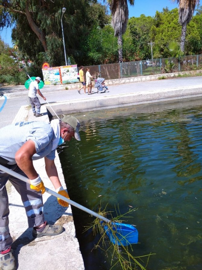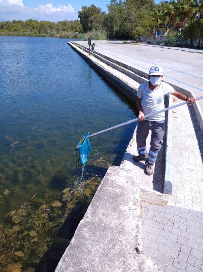 Antalya Büyükşehir Belediyesi Çevre Koruma ve Kontrol Dairesi Başkanlığı Manavgat ekibi otellerin yoğun olduğu Titreyengöl'de temizlik yaptı.