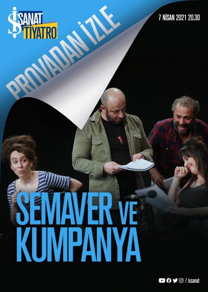 Daha önce Molire'in Cimri başlıklı oyunun provasını İş Sanat çevrim içi sahnesine taşıyan Semaver Kumpanya oyuncuları bu kez Sait Faik Abasıyanık'ın aynı başlıklı hikayelerinden uyarlanan ve tiyatro grubuna da ismini veren "Semaver ve Kumpanya" başlıklı oyunun provasını sunuyor. İlk gösterimi 7 Nisan tarihinde saat 20.30'da İş Sanat'ın sosyal medya kanalı ve internet sitesi üzerinden gerçekleştirilecek "Semaver ve Kumpanya'oyunu, sezon boyunca ücretsiz erişime açık olacak.