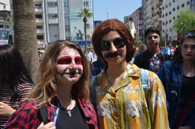 Denizli Büyükşehir Belediyesinin bu yıl 33.’ncüsünü düzenlediği Uluslararası Amatör Tiyatro Festivali’nin korteji yapıldı. Denizli Valiliği önündeki Atatürk Anıtı’na çelenk sunma töreninin ardından düzenlenen korteje, Denizli Büyükşehir Belediyesi Genel Sekreter Yardımcısı Mustafa Gökoğlan, Kültür, Turizm ve Tanıtım Dairesi Başkanı Hüdaverdi Otaklı, sevilen tiyatro ve sinema sanatçıları Erhan Yazıcıoğlu, Pervin Ünalp, Uluslararası Amatör Tiyatro Festivali için kente gelen yerli ve yabancı amatör tiyatro grupları ve davetliler katıldı. Denizli Büyükşehir Belediyesi Bandosu eşliğinde yürüyüşe geçen gruplar, Gazi Mustafa Kemal Bulvarı’nı takip ederek 15 Temmuz Delikliçınar Şehitler Meydanı’na kadar devam eden korteje katıldı. Denizlilerin cadde boyunca yoğun ilgi gösterdiği kortej renkli görüntülere sahne oldu. Makyajları ve kostümleri ile dikkat çeken tiyatrocular şarkı söyleyip dans ettiler.