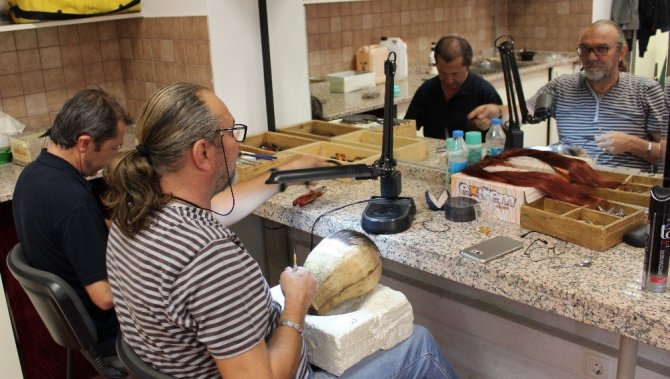 Devlet Tiyatroları’nda Plastik Atölyesi’nde heykeltıraş olarak görev yapan İlhan Ateş, imal ettikleri tüm malzemelerin tasarımcıların eskizleri doğrultusunda yapıldığını söyleyerek, “Burası Plastik Atölyesi, oyunlarda kullanılan maskeler, ağaçlar, heykeller, kayalar, ağaç gövdeleri burada imal ediliyor. Değişik malzemeler kullanılıyor; strafor, çamur, alçı ve sünger gibi. Oyunlardaki ihtiyaçlara göre üretimini yapıp sahneye veriyoruz. Maskeler; genelde oyunlarda tasarımcı arkadaşların tasarladıkları şeye göre eskizler gelir. Biz onlara göre imal ederiz. Oyunun içeriğine göre gelen maskeleri burada yapıyoruz” şeklinde konuştu.