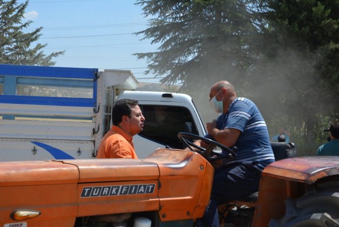 Sancaktar ve ekibi, Toprak Mahsulleri Ofisinden arpa alımı yapan çiftçilerin sorunlarını dinledi.
