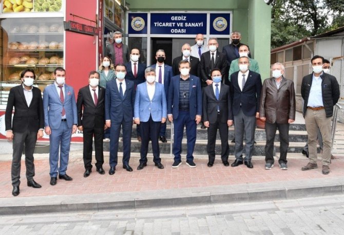 İlk olarak Gediz Ticaret ve Sanayi Odasını ziyaret eden Türkiye Odalar ve Borsalar Birliği (TOBB) Başkanı Rifat Hisarcıklıoğlu'nu, Gediz Kaymakamı Hakan Alkan, Gediz Belediye Başkanı Muharrem Akçadurak, Gediz Sanayi ve Ticaret Odası Başkanı Vedat Öztürk ve Yönetim Kurulu Üyeleri, AK Parti Gediz İlçe Başkanı Mehmet Erkan, Gediz OSB Yönetim Kurulu Başkanı İbrahim Başol karşıladı.