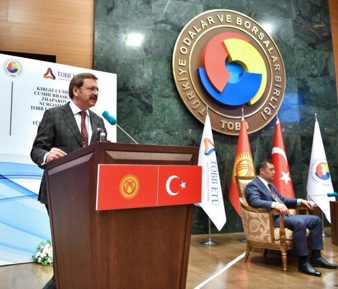 Kırgızistan ve Türkiye'nin, kederi de, sevinci de, birlikte paylaşan, iki kardeş ülke olduğunu vurgulayan Hisarcıklıoğlu, "TOBB Ekonomi ve Teknoloji Üniversitesi, Türkiye Odalar ve Borsalar Birliği tarafından 2004 yılında kuruldu. 17 yıllık genç bir üniversite. Ama daha ilk yıllarından itibaren, Türkiye'nin en çok tercih edilen üniversitelerinden biri oldu. Türkiye'de bir ilki başlatarak uyguladığı ortak eğitim programı, sanayi-üniversite işbirliğinde model haline geldi. Akademik kadromuz, hem yurtiçinden hem de yurtdışından gelmiş, son derece seçkin ve kaliteli isimlerden oluşuyor. Bunun bir göstergesi olarak, bilimsel başarıda, tüm özel üniversiteler arasında ilk beş içindeyiz. 2000 yılından sonra kurulan genç üniversiteler arasındaysa, hep ilk sıradayız. TOBB ETÜ aynı zamanda girişimciliğe odaklanmış bir üniversitedir. Türkiye Girişimci ve Yenilikçi Üniversite Endeksinde ilk 10 üniversite arasındadır. Genç girişimcilere, fikirlerini gerçekleştirebilmeleri için fikri ve maddi imkanlar sunuyoruz. Kurduğumuz araştırma merkezleri ve ar-ge alanında da üniversitemiz öne çıkıyor" şeklinde konuştu.