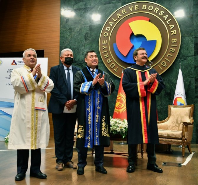 Türkiye Odalar ve Borsalar Birliği Ekonomi ve Teknoloji Üniversitesi (TOBB ETÜ) tarafından Kırgız Cumhuriyeti Cumhurbaşkanı Sadır Caparov'a, fahri doktora...