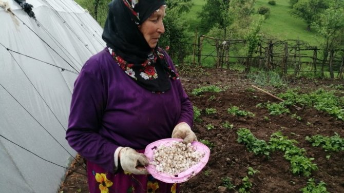 Tokat'ın Reşadiye ilçesinde kısa süreli yağan dolu tarım arazilerine zarar verdi.