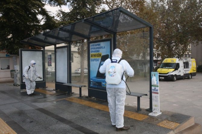 Tokat’ta, belediye ekipleri halkın toplu olarak bulunduğu alanlarda Bilim Kurulu tarafından belirlenen şekilde düzenli olarak temizlik ve dezenfekte çalışması yaptı. Yapılan çalışmalarla ilgili açıklamalarda bulunan Tokat Belediye Başkanı Eyüp Eroğlu, maske, mesafe ve temizlik kurallarına vatandaşların riayet etmesinin önemine değindi. Korona virüsle mücadele kapsamında belediye ekiplerinin gece-gündüz 3 vardiya halinde çalışmalarını sürdürdüğüne dikkat çeken Başkan Eroğlu, ”Salgına karşı Bilim Kurlunun önerileri ile öncelikle maske, mesafe ve temizlik konularına hassasiyet göstermemiz gerekiyor. Ayrıca sokağa çıkma kısıtlamaları, toplu taşıma araçlarının kullanımı, kamu kurumları ve AVM’lere girişlerde istenen HES kodu uygulamasını vatandaşlarımızın dikkate almalarını rica ediyorum. Bizler de belediye olarak vatandaşlarımızın sağlığı için her türlü tedbiri almaya devam ediyoruz. Covid-19’a karşı olan mücadeleyi siz değerli halkımızla birlikte başaracağız” diye konuştu.