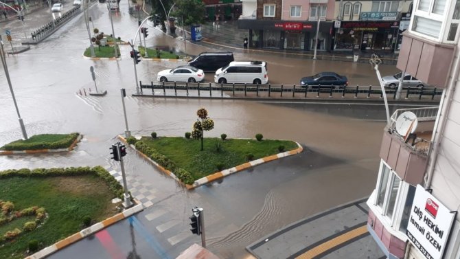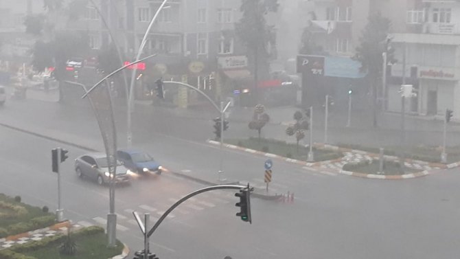 Kent merkezinde sabah saatlerinde başlayan sağanak yağış yaklaşık 10 dakika sürdü.