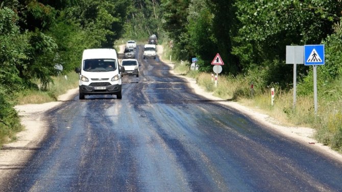 Tokat'ta 37 dereceye yükselen hava sıcaklığı nedeniyle karayolunda asfalt eridi.