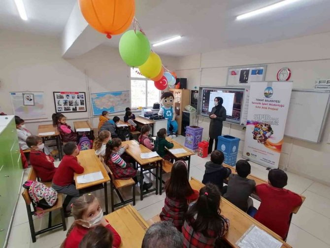 Tokat Belediyesi Temizlik İşleri Müdürlüğü ekipleri "Sıfır Atık" projesi kapsamında anaokulu ve İlkokullarda çevre ve sıfır atık eğitimlerine devam ediyor. "Sıfırdan Başlıyoruz" sloganıyla yola çıkan Tokat Belediyesi ekipleri, çocuklarda farkındalık oluşturmak amacıyla her hafta çeşitli anaokulu ve okullarda çevre temizliği ve sıfır atık konusunda Alican karakteri ile eğlenceli eğitim veriyor.