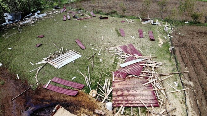 Tokat merkeze bağlı Keşlik köyünde sağanak yağışla birlikte oluşan şiddetli rüzgar çatıları uçurdu. 3 ahırın çatısı uçarak kullanılamaz hale geldi. Rüzgarın etkisi ile uçan çatı parçaları ağaçların dallarına takılı kaldı. Maddi hasarla atlatılan olayda köylüler yaşadıkları korku dolu anları dile getirdi. 3 çocuk annesi Meliha Canikli (55), gözyaşı dökerek yaşadığı çaresizliği anlattı. Fırtınadan ahırlarını büyük zarar gördüğünü belirten Canikli, "Ahırlarımızın çatıları tamamen uçtu. Samanlarımız açıkta kaldı. Yapacak bir şeyimiz yok, büyük zararımız var" dedi.