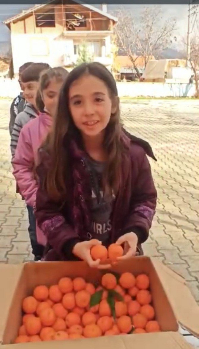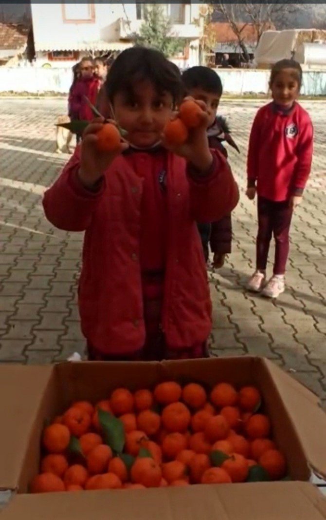 Aydın'ın Sultanhisar ilçesi Kabaca İlkokulu öğrencileri, okul bahçesinden topladıkları mandalinaları Antalya'daki yaşıtları ile paylaştı.