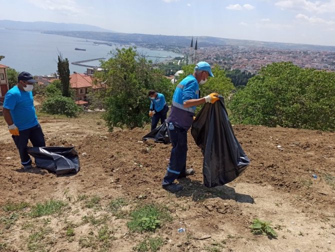 Süleymanpaşa'nın en hakim noktalarından biri olan Ata Tepe'de her hafta çöp toplayan görevliler, bu noktada sadece bir haftada yüzlerce torba dolusu çöp topladı. Çöp torbalarıyla devasa büyüklükte "Temiz Süleymanpaşa" yazılarak çekilen fotoğraf karesi ise durumun vahametini gösterdi.