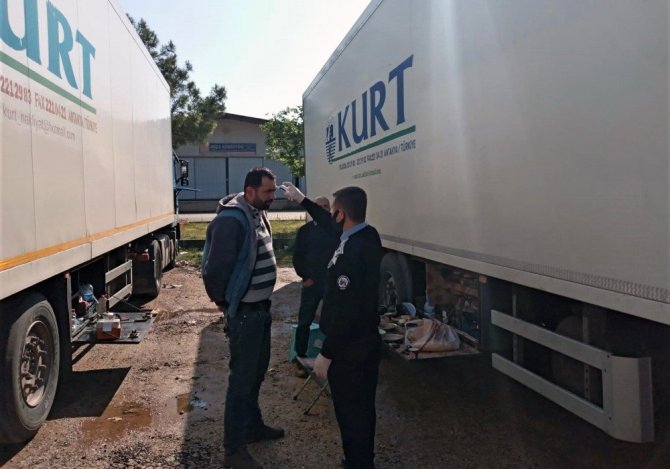 Büyükşehir Belediyesi ekiplerince sabahın erken saatlerinde kurulan üretici meydanında ve tır parkında malın sevkini gerçekleştirecek olan yerli ve yabancı nakliye tır sürücülerine düzenli olarak ateş ölçümü yapılıyor. Ayrıca ekipler, yabancı uyruklu olan sürücü misafirlere İngilizce, Almanca, Rusça, Romence, Azerice, Belarusça ve Ukrayna dilinde olmak üzere çeşitli dillere çevrilmiş “Koronavirüs İle Mücadelede Uyulması Gereken 14 Kural” broşürleri dağıtıyor.