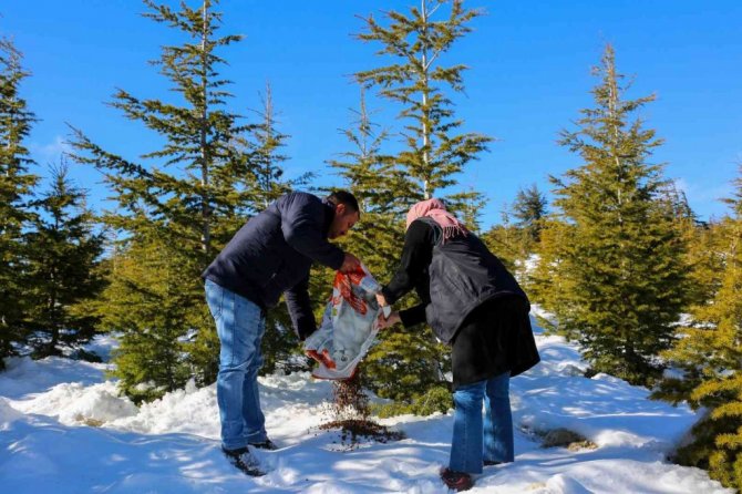 Toros dağlarında yaban hayvanlarına yem