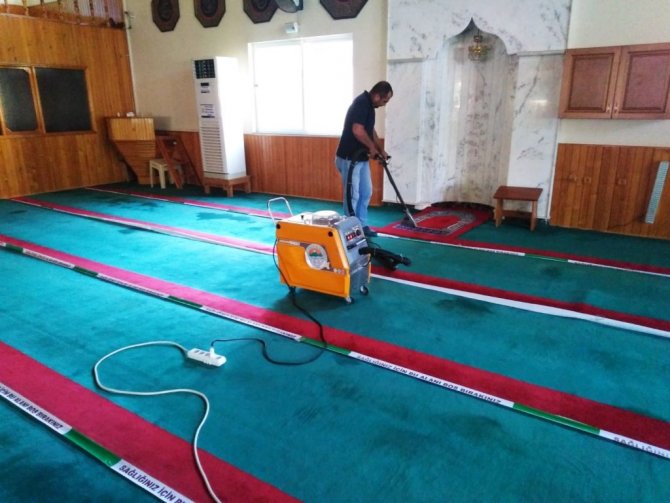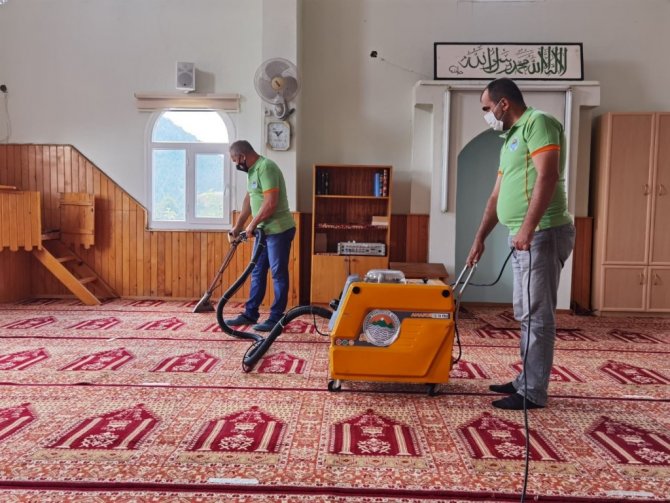Belediye Temizlik İşleri Müdürlüğü ekipleri, yayla sezonunun başlamasıyla birlikte yüksek kesimlerdeki mahallerde bulunan tüm ibadethanelerin temizlik ve dezenfekte işlemlerini koordineli bir şekilde gerçekleştirdi. İbadethanelerdeki halılar, halı yıkama makinesiyle yerinde yıkanarak hijyenik hale getirilirken, Covid-19'a karşı avlu, tuvalet, kapı kolları ve ayakkabılık gibi temasın olabileceği tüm yüzeyler dezenfekte edildi.