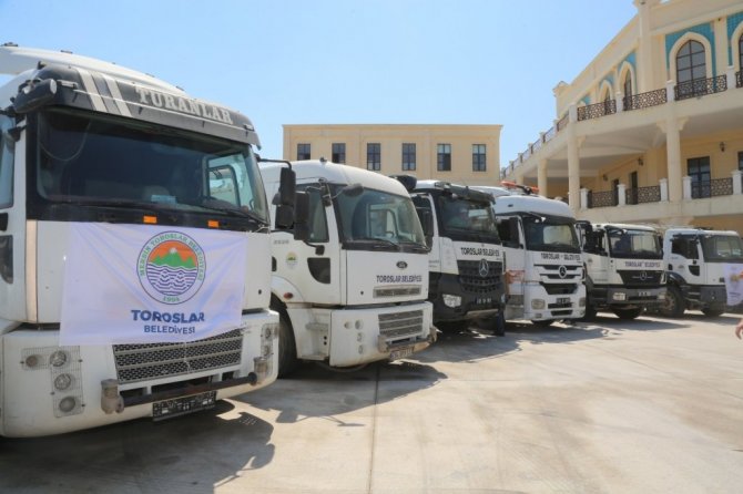 Toroslar Belediyesi, orman yangının devam ettiği Silifke ve Aydıncık ilçelerine ekipman desteği ve yardım tırlarını gönderdi.