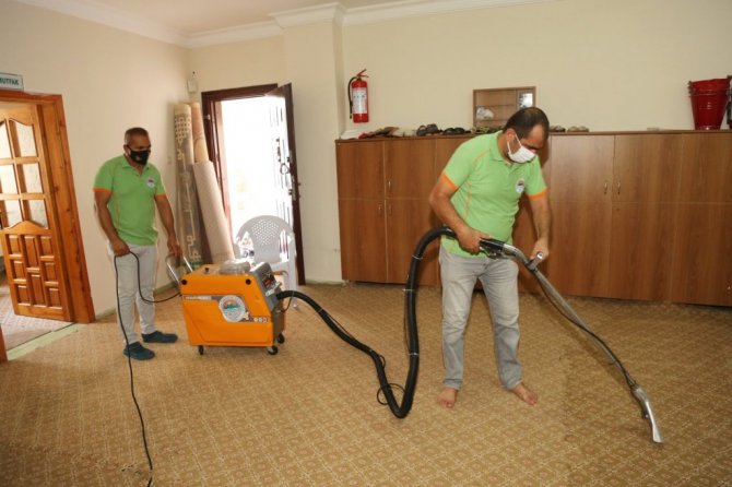 Mersin'in merkez ilçe Toroslar Belediyesinden yapılan açıklamaya göre, Temizlik İşleri Müdürlüğü ekipleri tarafından ibadethanelerdeki halılar, halı yıkama makinesiyle yerinde yıkanarak hijyenik hale getirilirken, avlu, tuvalet, kapı kolları ve ayakkabılık gibi temasın olabileceği tüm yüzeyler titizlikle dezenfekte ediliyor.
