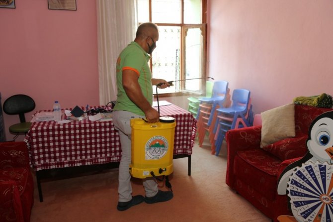 Toroslar Belediyesi, Covid-19 tedbirleri kapsamında ilçe genelinde bulunan Kuran Kursu ve ibadethanelerde temizlik ve dezenfeksiyon çalışmalarını aralıksız sürdürüyor