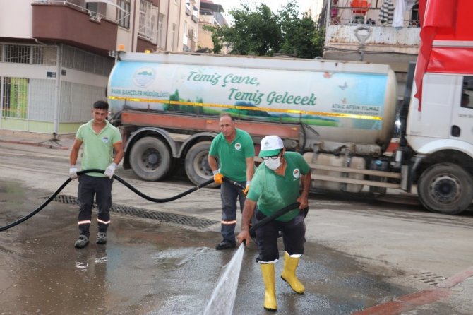 Toroslar Belediyesi, geçen cumartesi akşamı Mersin'de yaşanan sağanak yağış sonrasında su baskınlarından etkilenen sokakları yıkadı, evleri dezenfekte etti.