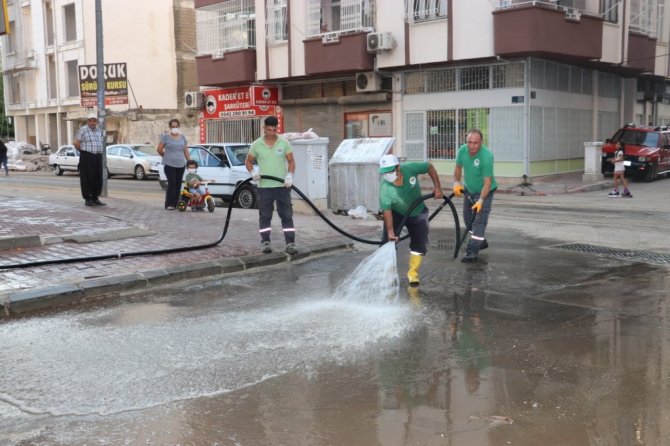 Mersin'in merkez ilçe Toroslar Belediyesinden yapılan açıklamaya göre, sağanak yağış esnasında tüm birimleriyle harekete geçen ve evlerde su tahliyesi yaparak su taşkınlarına anında müdahale eden belediye, vatandaşların mağduriyetlerinin giderilmesi amacıyla gerekli çalışmalarına devam ediyor. Sokaklar, taşan kanalizasyon sularından temizlenerek dezenfekte edilirken, su ve çamurla dolan evlerde de dezenfekte çalışmaları titizlikle gerçekleştirildi.