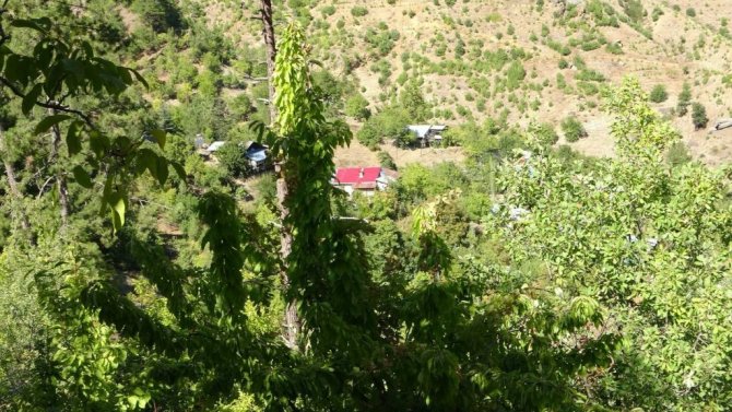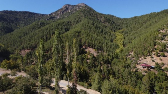 Toros Dağları eteklerinde bulunan Adana'nın Feke ilçesindeki yayla evleri, sonbahar manzaralarıyla görsel şölen oluşturuyor. Katran ve kızılçam ormanlarının arasında doğal kaynak sularının buluştuğu ilçede sarıya bürünen doğa manzarası havadan drone ile görüntülendi.